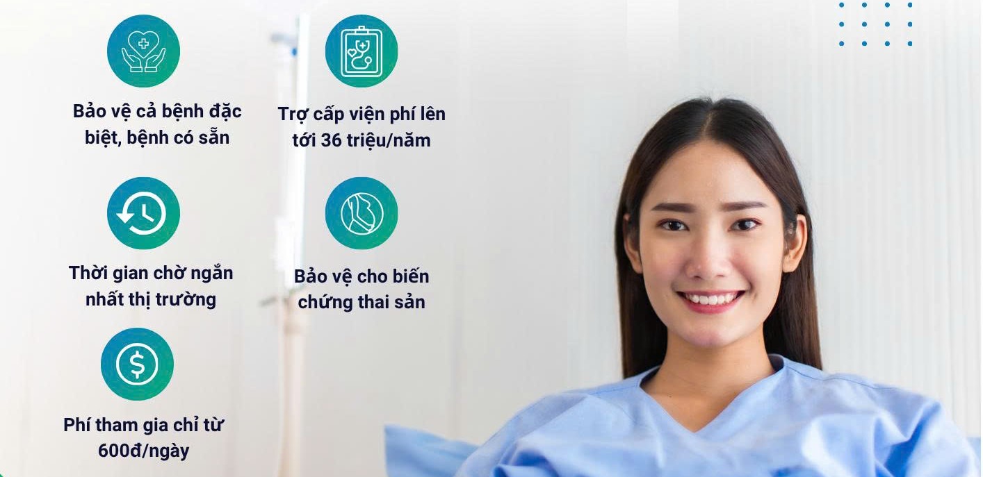 Bên cạnh chế độ thai sản tự nguyện của Nhà Nước, người tham gia bảo hiểm sẽ có thêm một khoản hỗ trợ nhằm giúp khi không may phải nằm viện điều trị bệnh.